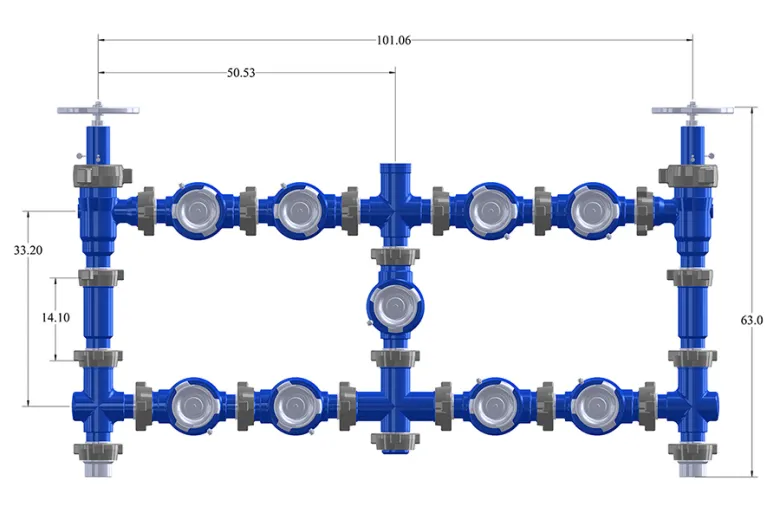 チョークマニホールドは、安全性を確保し、掘削、完成、または介入プロセス中の噴出を防ぐために坑井圧力を管理および制御するため、石油およびガス産業、特に坑井制御作業において重要なコンポーネントです。これらのシステムは、バルブ、ゲージ、調整可能なチョークで構成されており、オペレーターが流体の流れを調整し、坑井の安定性を維持できるようにします。チョークマニホールドの主な機能には、キック中の圧力の管理、坑井試験中の流量の制御、坑井の清掃の促進、坑井の安定性の維持、水圧破砕作業における圧力の調整が含まれます。チョークには主に 2 つのタイプがあります。1 つは手動で流量を制御できる調整可能なチョーク、もう 1 つは固定オリフィス サイズを持つポジティブ チョークです。チョークマニホールドの重要性は、正確な圧力制御を提供する機能にあり、これにより掘削作業の安全性と効率が向上し、人員、機器、環境が保護されます。全体として、チョークマニホールドは石油およびガス産業において、生産プロセスを成功させ安全にするために不可欠です。
